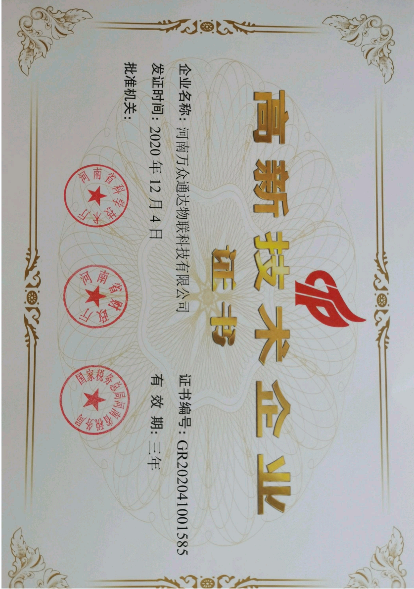 2020年12月份获得国家高新技术企业。