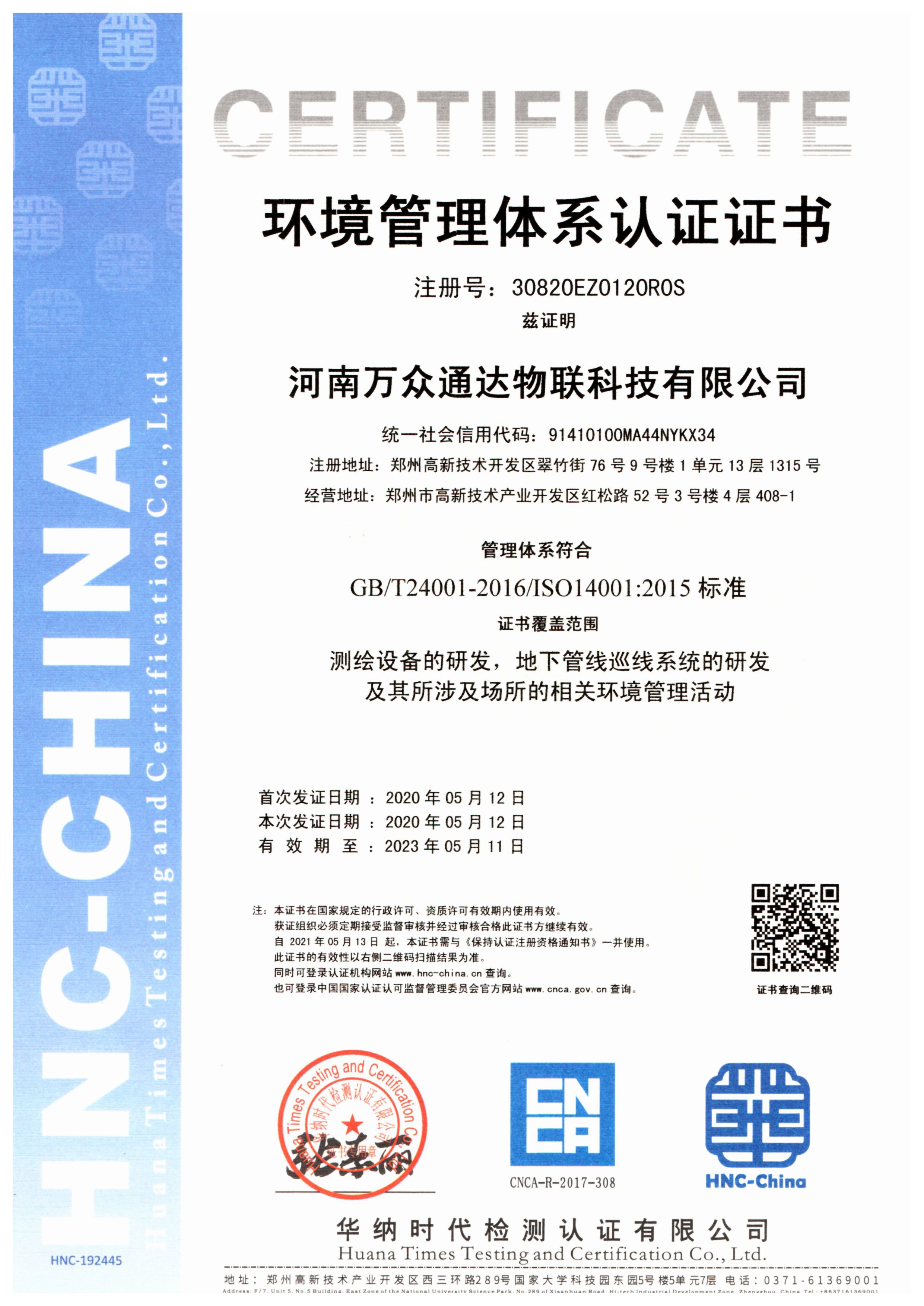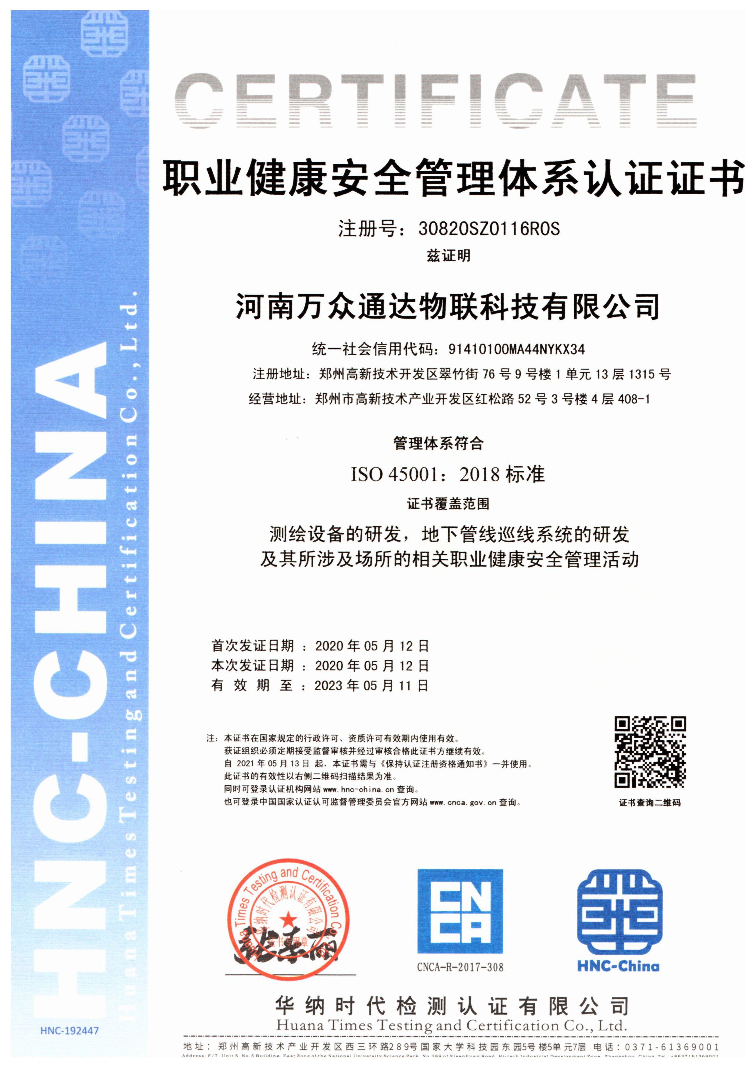 2020年5月取得ISO9001认证。